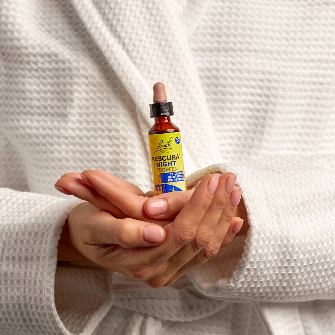 - Unterstütze Deine innere Balance mit RESCURA® NIGHT Gummis, Pastillen oder NIGHT Tropfen.
